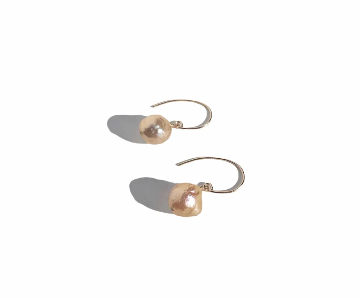 Ball Earrings with Large Metallic Baroque Pearls Gold-filled Ear Wire